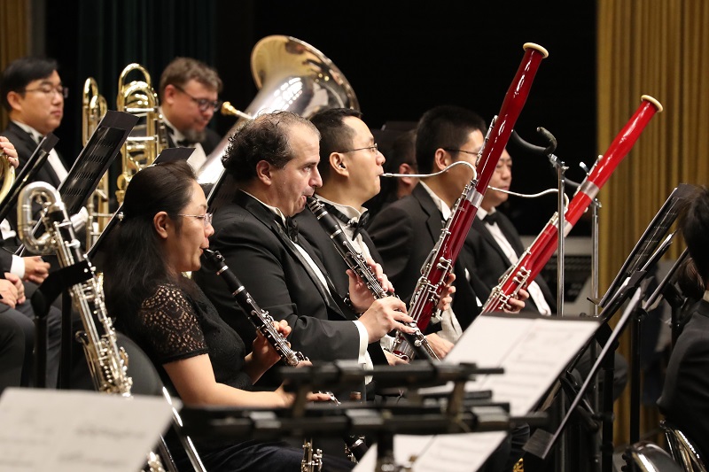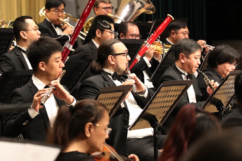当晚音乐会以铜管乐为主,在交响序曲《京韵》中拉开序幕。《德沃夏克第九交响曲(自新大陆)》交响乐第二乐章、《爱的致意》《妈妈教我一支歌》等乐曲相继奏响。指挥李飚在每首曲目演奏前为大家介绍乐曲的音乐背景。艺术家们用高超的技艺诠释经典,演出时而细腻沉静、时而热烈激昂,现场观众沉浸在丰富多彩的音乐世界。演出结束后,在观众的强烈要求下,乐团指挥三次返场,加演《马刀舞曲》《北京喜讯到边寨》《我爱北京天安门》三首乐曲。铿锵有力的节奏、持续不断的掌声回荡礼堂上空,将音乐会再次推向高潮。